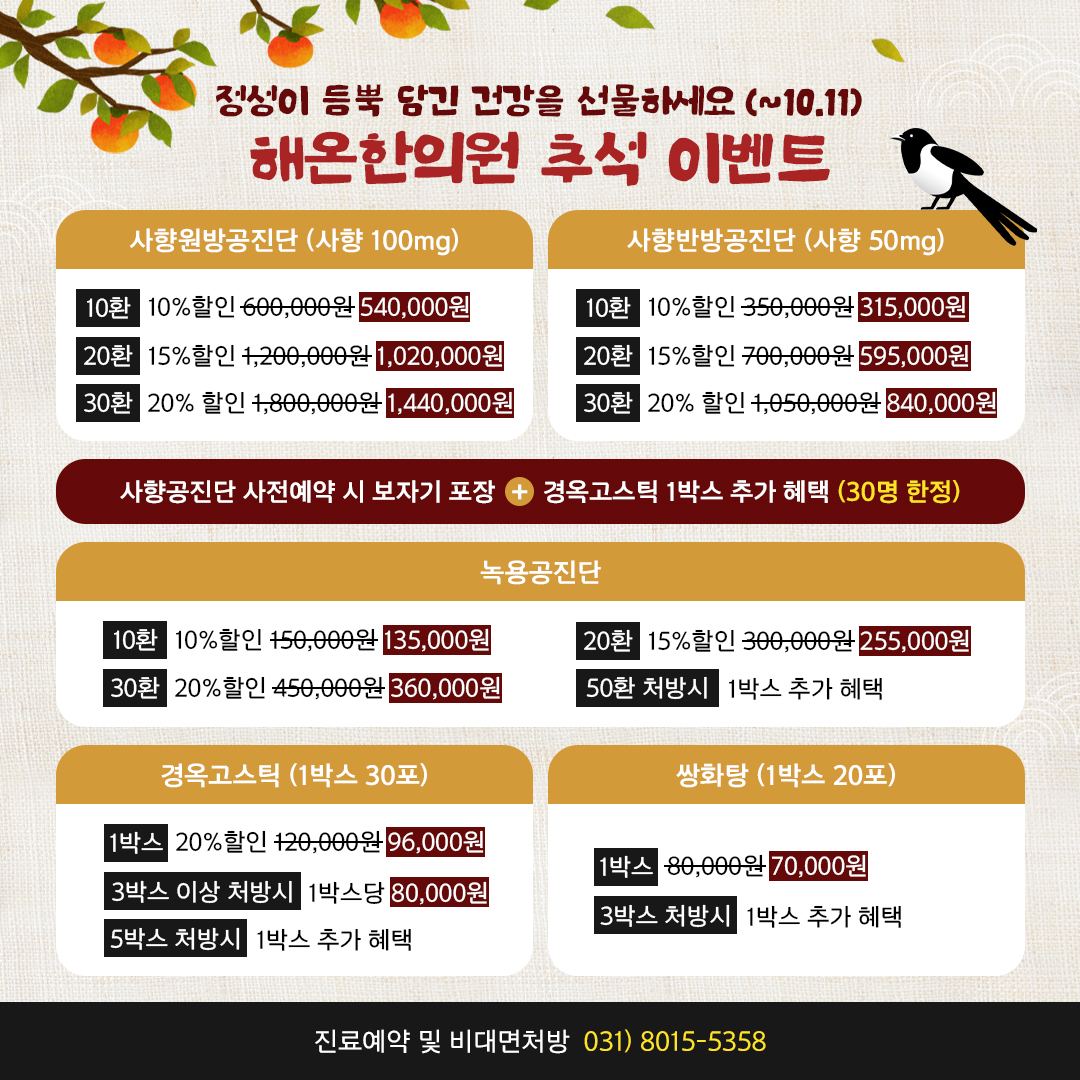 사향원방공진단은 한의원에서만 구할 수 있습니다.